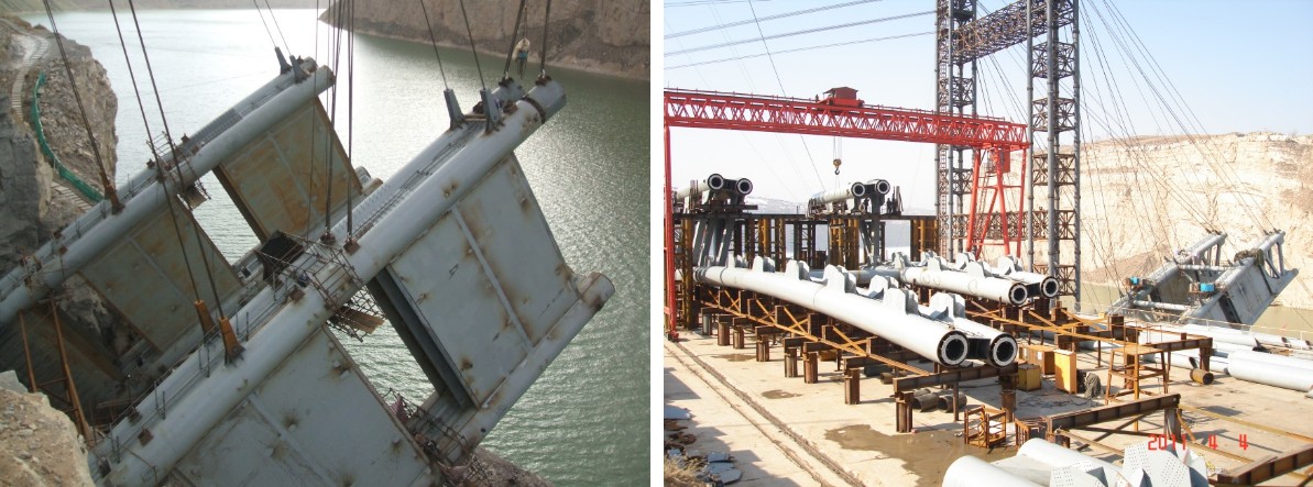 山西準朔黃河特大橋為上承式鋼管拱橋,主跨為360m的鋼管混凝土拱結(jié)構(gòu),工程量為9100噸。于2009月9月份開始施工,到2011年7月份完工。全橋采用橋為整體節(jié)段拼裝、纜索吊吊裝的施工方案,克服了四管拱腳空間定位、整體節(jié)段懸拼精確定位、冬季施工等難點。