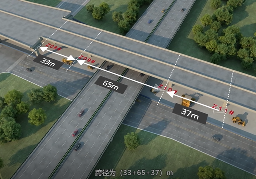 據悉,高鐵新城快速路連接線是524國道的重要組成部分,也是蘇州市快速路東環放射線北延伸段,該項目采用全線高架+地面輔路的敷設形式,路線全長約1.8公里,其中8#-11#為(33+65+37)m三跨等高連續鋼箱梁,主跨上跨繞城高速,梁高2.5m,橫斷面為單箱三室結構,總寬度26m,總重量2051噸。